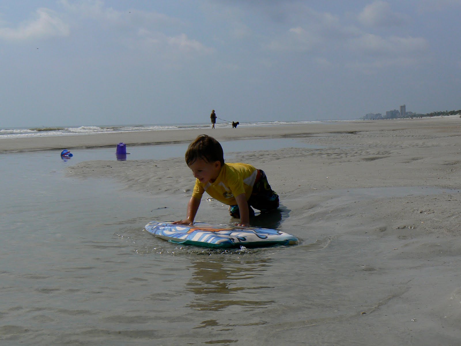 The makeshift surfboard..."Joshy surf lil waves...Daddy surf BIIIIIIG waves."